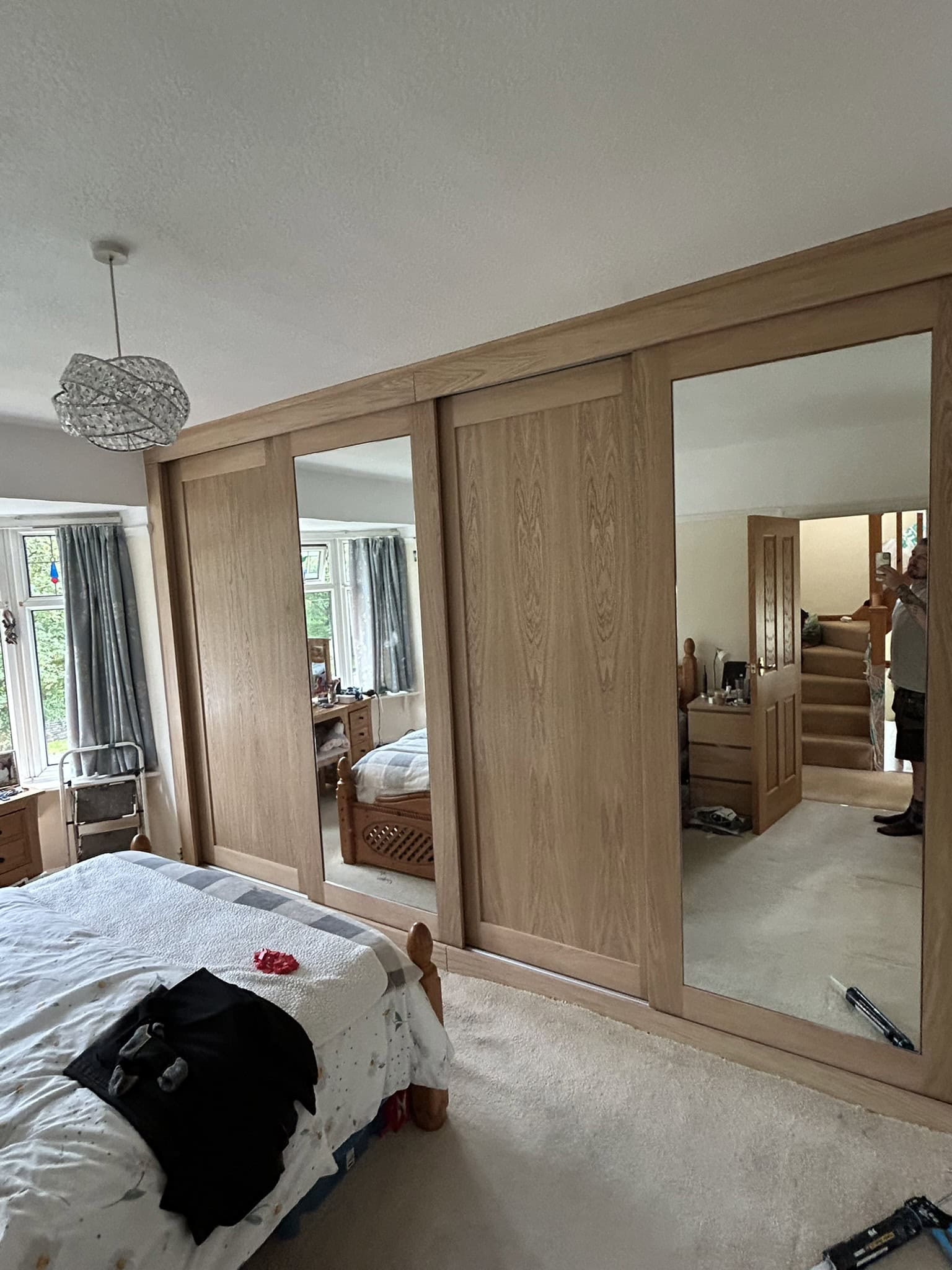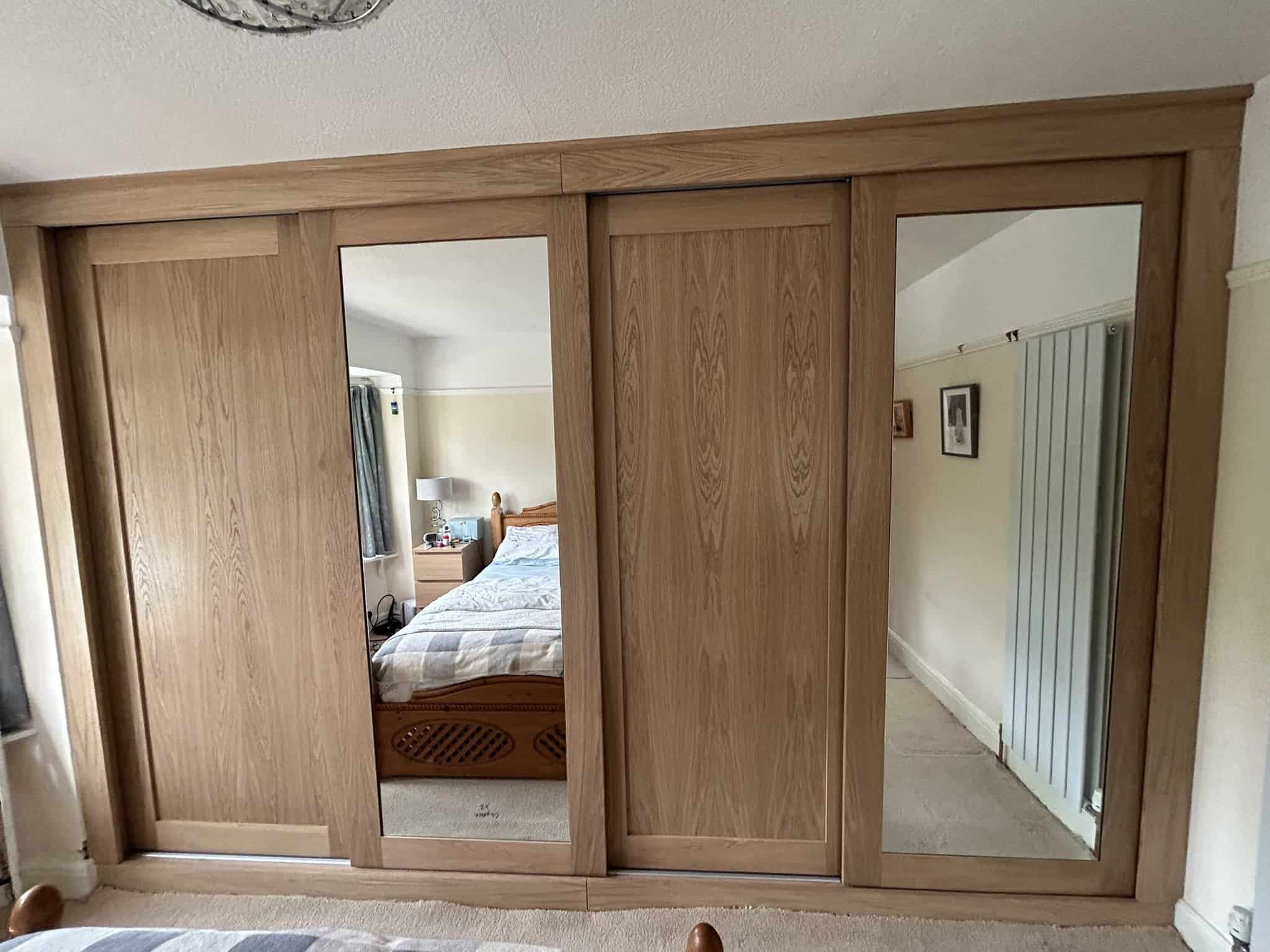 Oak sliding wardrobes with mirrors